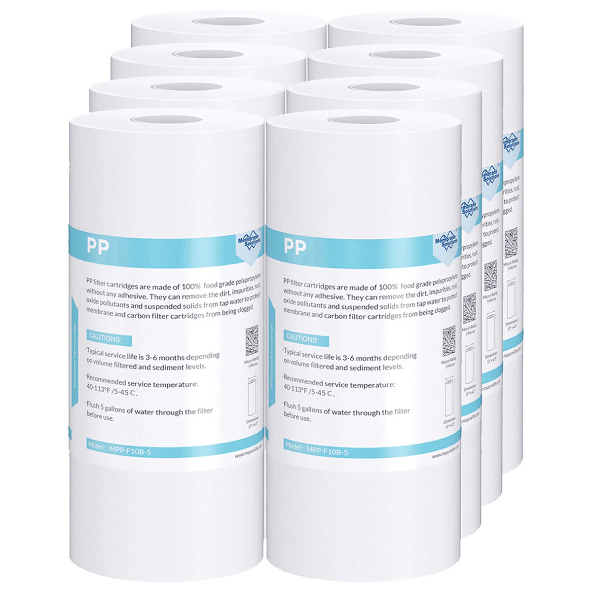 Filters up to 15,000 gallons depending on the use and feed water quality. Replace the filter every 3-6 months to achieve optimal performance. Combined with other filters such as the CTO filter, Membrane Solutions fine PP sediment filter not only brings clean and refreshing water to every faucet in your home but also helps to prolong the lives of your appliances and protects plumbing from sediment and scale buildup.